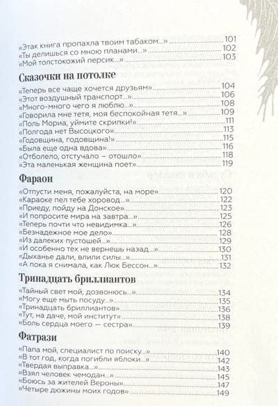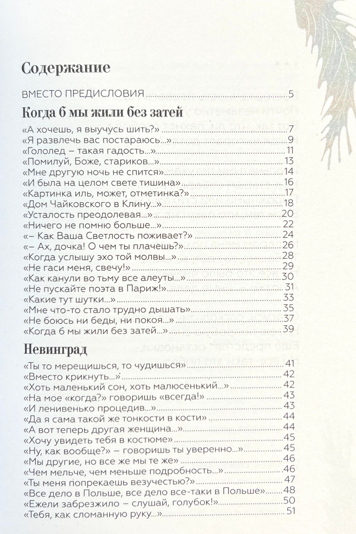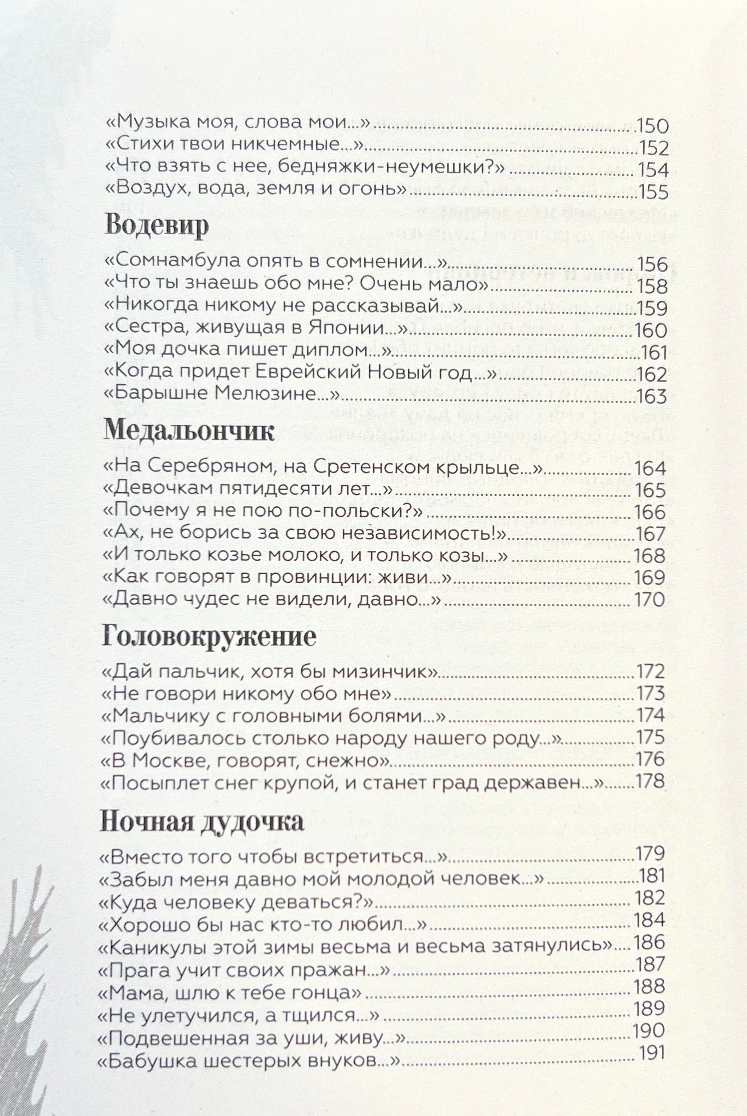 Читая музыкальную поэзию Вероники Долиной, попадаешь в другое измерение, параллельную реальность, где музыка звучит очень отчетливо, совершая свою тончайшую работу — нежную и созидательную. Уже много лет ее творчество знает и любит не одно поколение. Эти стихи поют и слушают на разных континентах верные поклонники, истинные ценители поэзии. Новая книга — долгожданное избранное Вероники Долиной.