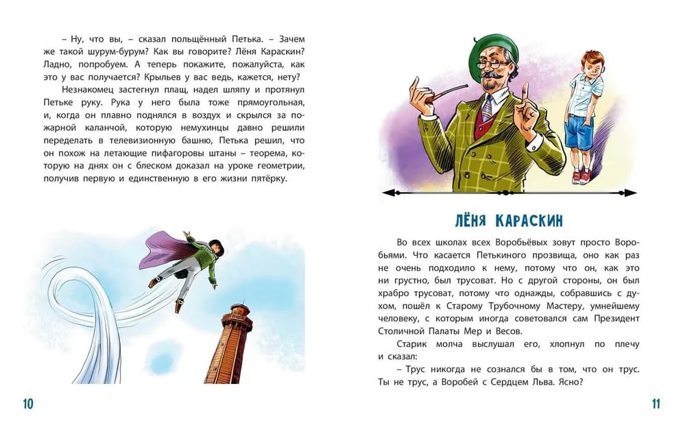 Известный советский писатель Вениамин Каверин (1902–1989) утверждал, что «в жизни нет ничего опаснее скуки». События в повести-сказке «Летающий мальчик» происходят в тихом городке Немухине. Там живет обыкновенный школьник Петя Воробьёв, который не верит в чудеса. По крайней мере до тех пор, пока в огород к нему не прилетает незнакомец из далёкой страны Летандии. Эта встреча полностью меняет Петину жизнь. Его ждут новые друзья, долгое путешествие на край земли и опасное противостояние с могущественным Главным Ветром…
