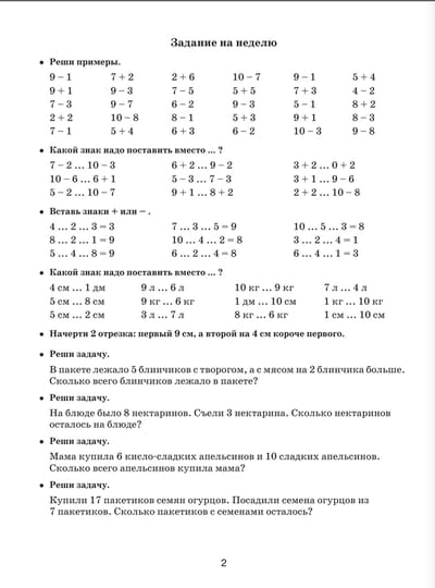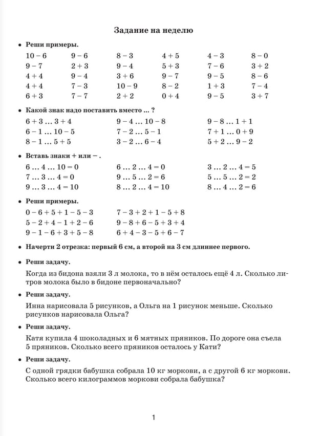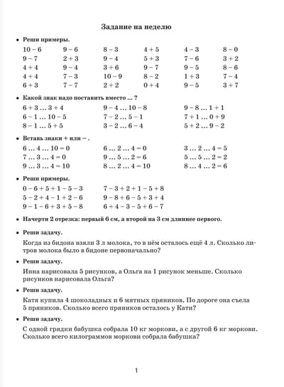 Летние задания по математике для повторения и закрепления учебного материала. 1 класс