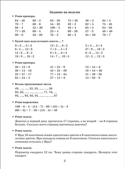 Летние задания по математике для повторения и закрепления учебного материала. 2 класс