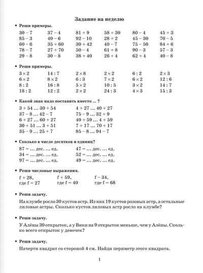 В пособии предлагаются задания на повторение и закрепление материала по всему курсу математики для 2 класса.