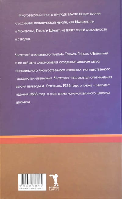 Многовековым спор о природе власти между такими классиками политической мысли, как Макиавелли и Монтескье, Гоббс и Шмитт, не теряет своей актуальности и сегодня. Читателей знаменитого трактата Томаса Гоббса «Левиафан» и по сей день завораживает созданный автором образ исполинского «искусственного человека», могущественного государства-левиафана. Читателю предлагается оригинальная версия перевода А. Гутермана 1936 года, а также - фрагмент издания 1868 года, в свое время конфискованного царской цензурой.