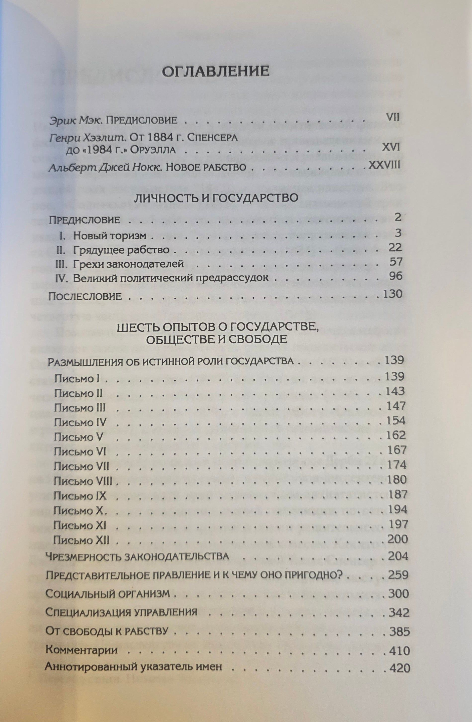 В очерках, собранных в этом томе, автор задокументировал процесс постепенного вырождения в Великобритании после 1850 г. классического либерализма в то, что в ХХ в. станет называться социальным либерализмом, и вызванный этим возврат к меркантилистскому и воинственному социальному порядку. Спенсер показывает, как постепенное приращение власти государства незаметно ведет к деспотизму и порабощению. Он критикует законодателей за игнорирование экономических законов, координирующих желания и усилия людей; атакует доктрину неограниченного суверенитета правительства, будь то монархического или парламентского, и связанную с ней концепцию прав как созданных государством и поэтому с такой же легкостью государством отменяемых.