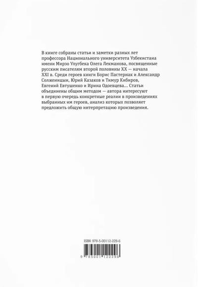 В книге собраны статьи и заметки разных лет профессора Национального университета Узбекистана имени Мирзо Улугбека Олега Лекманова, посвященные русским писателям второй половины ХХ — начала ХХI в. Среди героев книги Борис Пастернак и Александр Солженицын, Юрий Казаков и Тимур Кибиров, Евгений Евтушенко и Ирина Одоевцева... Статьи объединены общим методом — автора интересуют в первую очередь конкретные реалии в произведениях выбранных им героев, анализ которых позволяет предложить общую интерпретацию произведения.