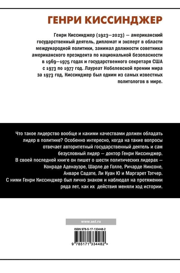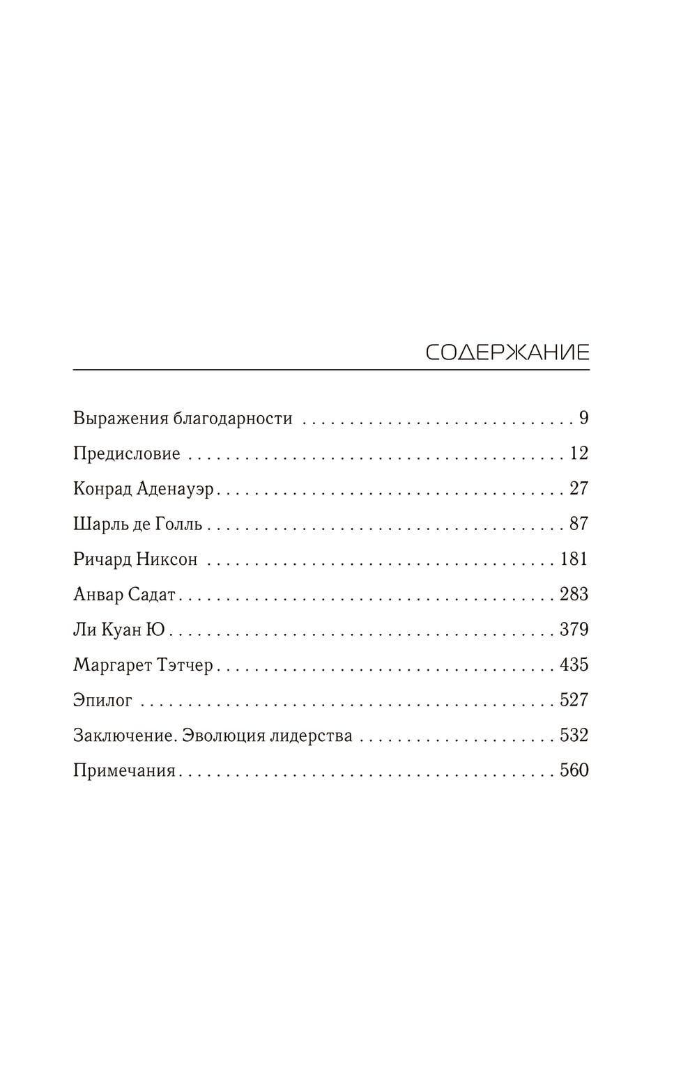 В своей последней книге он пишет о шести политических лидерах — Конраде Аденауэре, Шарле де Голле, Ричарде Никсоне, Анваре Садате, Ли Куан Ю и Маргарет Тэтчер.