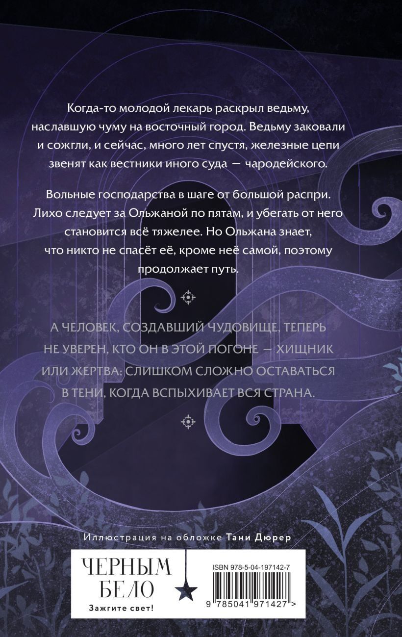 Вольные господарства в шаге от большой распри. Лихо следует за Ольжаной по пятам, и убегать от него становится всё тяжелее — но Ольжана знает, что никто не спасёт её, кроме неё самой, поэтому продолжает путь. А человек, создавший чудовище, теперь не уверен, кто он в этой погоне — хищник или жертва: слишком сложно оставаться в тени, когда вспыхивает вся страна. Вторая часть трилогии «Лихо» — славянского фэнтези с тёмным колоритом от автора популярных фэнтези-романов «Год Змея» и «Змеиное гнездо» Яны Лехчиной. В сюжет основных глав вплетены восточные мотивы: орден башильеров, охота на ведьм и охваченный чумой город, который вот-вот падёт. Тёмные часовни, пустые дороги, дождливые вечера — атмосфера общей тайны, пронизывающая весь роман.