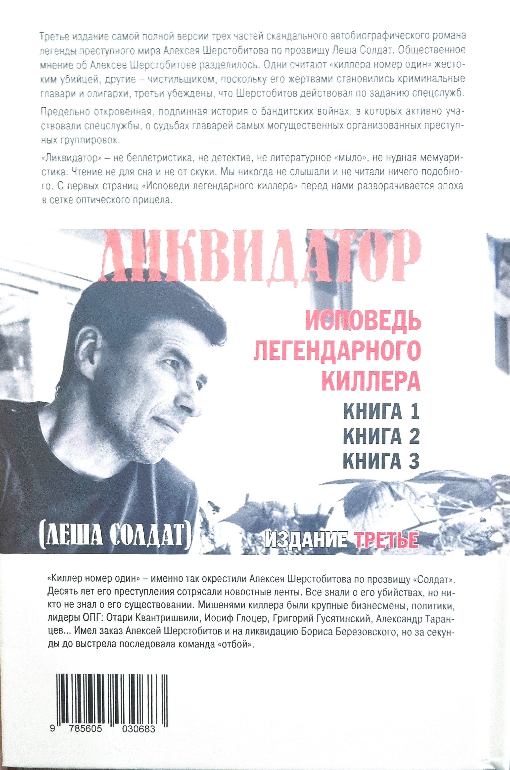 Третье издание самой полной версии трех частей скандального автобиографического романа легенды преступного мира Алексея Шерстобитова по прозвищу Леша Солдат. Общественное мнение об Алексее Шерстобитове разделилось. Одни считают «киллера номер один» жестоким убийцей, другие – чистильщиком, поскольку его жертвами становились криминальные главари и олигархи, третьи убеждены, что Шерстобитов действовал по заданию спецслужб.