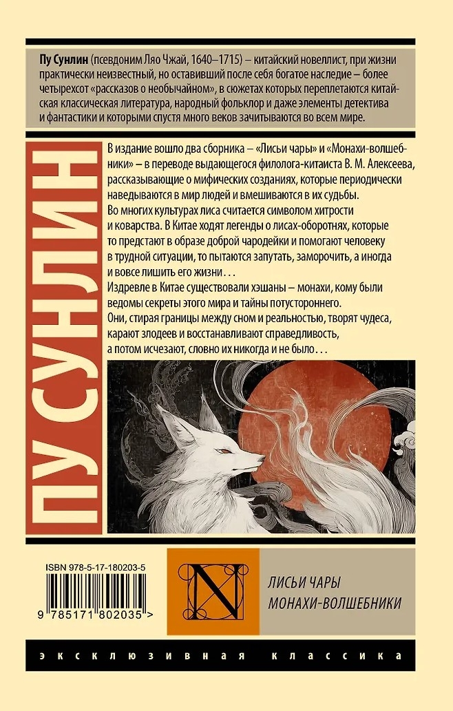 В издание вошло два сборника «Лисьи чары» и «Монахи-волшебники» в переводе видного филолога-китаиста Алексеева В. М., рассказывающие о мифических созданиях, которые периодически наведываются в мир людей и вмешиваются в их судьбы.