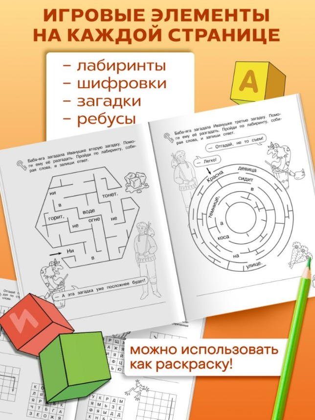 Интерактивная рабочая тетрадь, разработанная практикующим нейропсихологом, поможет активизировать умственные способности и превратит обучение в увлекательное литературное путешествие. Занимаясь, дошкольник будет встречать любимых литературных героев и знакомиться с другими сказочными персонажами, которым понадобится его помощь. На каждой странице ребёнку предстоит проходить лабиринты, собирая по пути буквы и слова, решать ребусы, загадки и шифровки. Упражнения, собранные в книге, помогут развить точность и целостность зрительного восприятия образа буквы, автоматизировать навыки чтения, повысить внимание и улучшить мелкую моторику и логическое мышление.