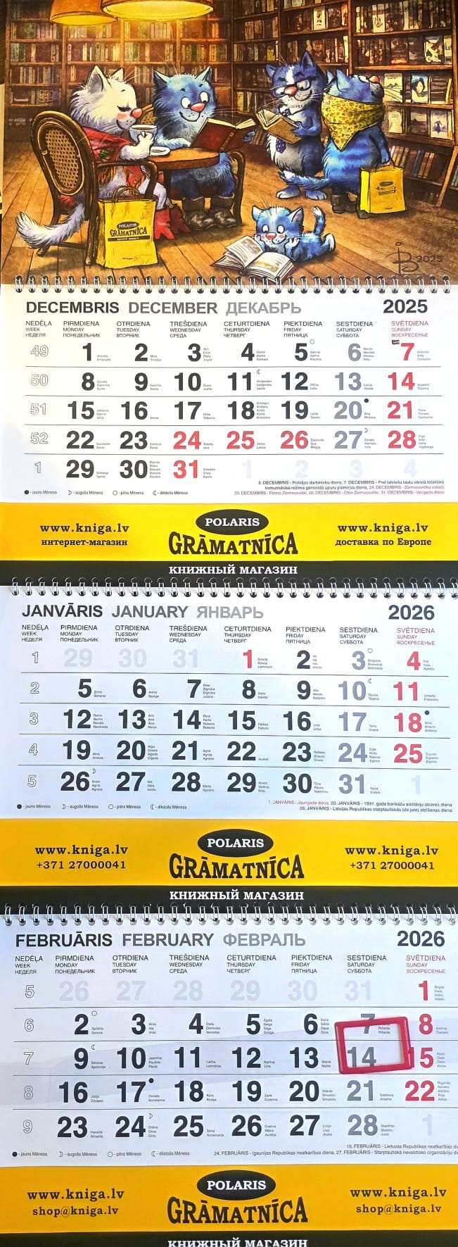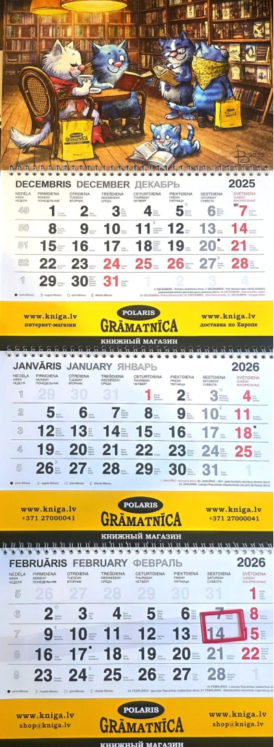 А в 2026 году календарь встречает атмосферой уюта и книг: Синие коты расположились в книжном кафе, читают, делятся историями и наслаждаются временем вместе. Настоящее вдохновение для всех, кто любит книги и теплые вечера в компании чтения!