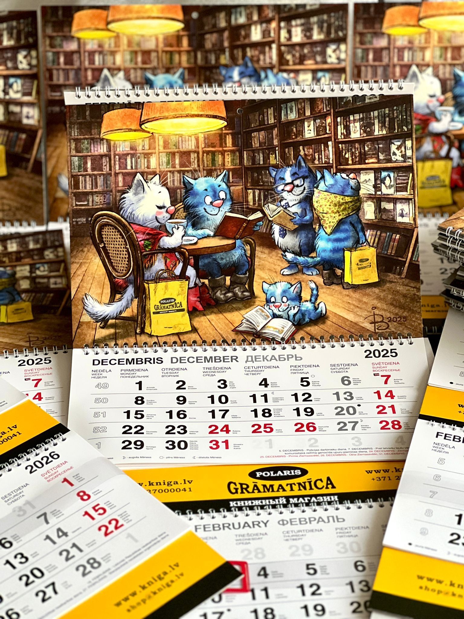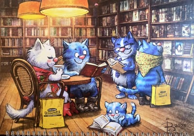 А в 2026 году календарь встречает атмосферой уюта и книг: Синие коты расположились в книжном кафе, читают, делятся историями и наслаждаются временем вместе. Настоящее вдохновение для всех, кто любит книги и теплые вечера в компании чтения!