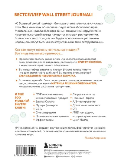«С большой силой приходит большая ответственность», —сказал Стэн Ли в комиксах о Человеке-Пауке и был абсолютно прав. Ментальные модели являются самым мощным «инструментом» мышления, который всегда находится в нашем распоряжении. В зависимости от того, как мы будем использовать различные модели, они могут быть как конструктивными, так и деструктивными.