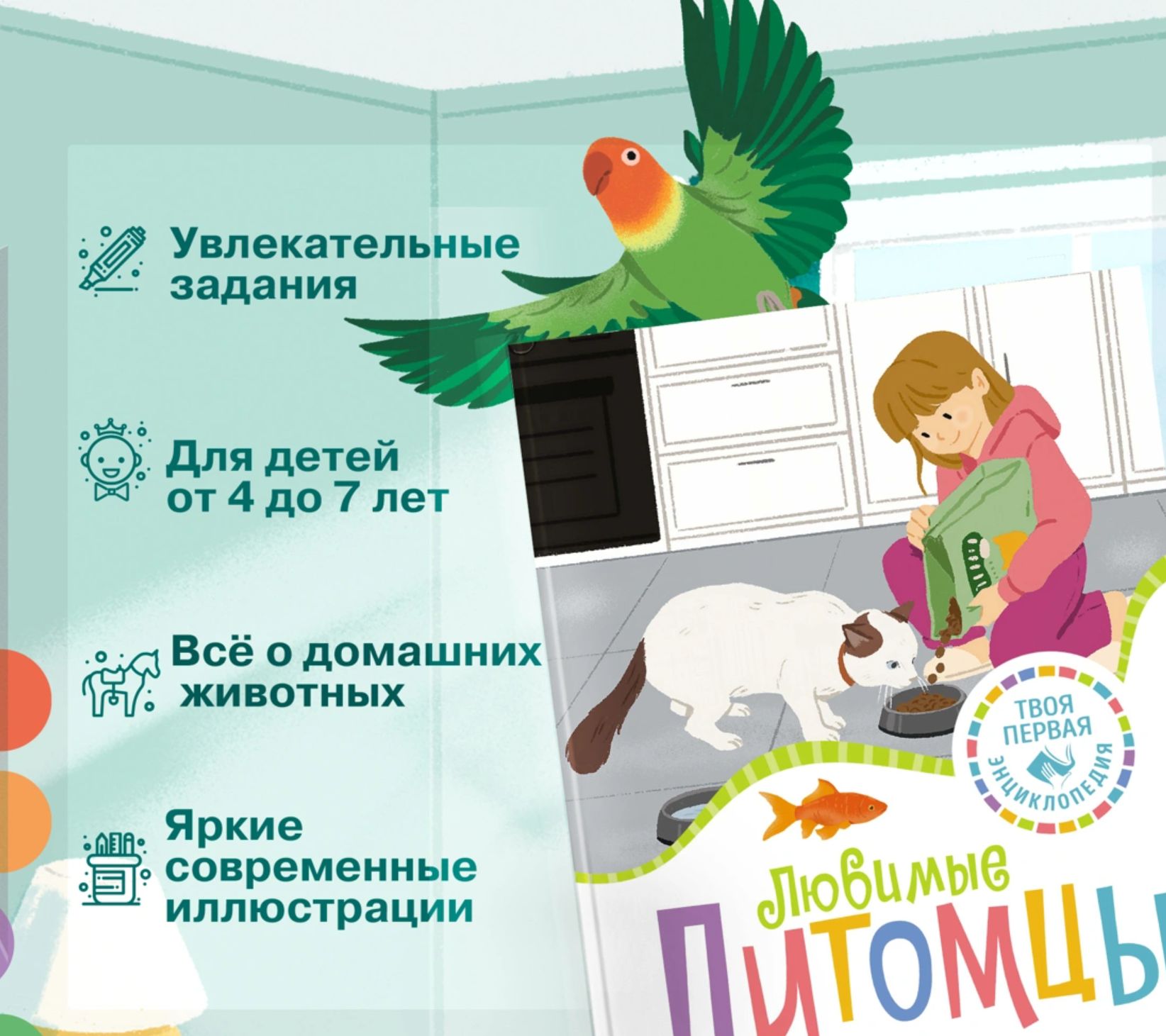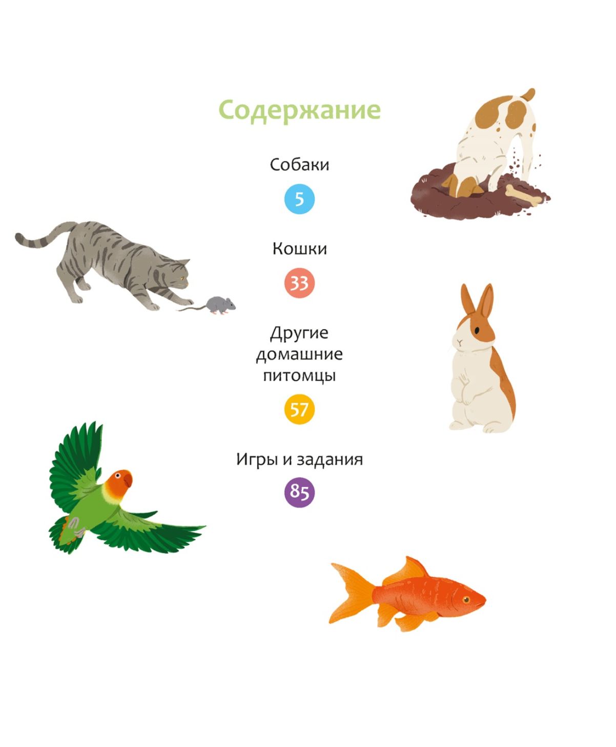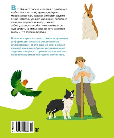 В этой книге рассказывается о домашних любимцах – котятах, щенках, попугаях, морских свинках, хорьках и многих других! Юные читатели узнают, хорошо ли зебровые амадины переносят холод, сколько зубов у взрослых собак, чем занимаются журналисты-анималисты, на кого охотятся таксы и что такое вибриссы. В книгах серии – только самая актуальная информация и самые современные иллюстрации! И это ещё не всё: в конце каждой книжки собраны увлекательные задания и игры, которые помогут весело провести время и повторить изученное.