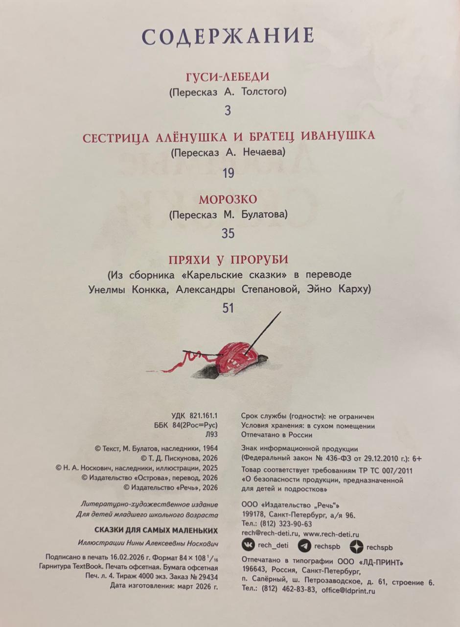 Русские народные сказки — это особый волшебный мир, знакомство с которым начинается с самого раннего детства. Поучительные и понятные малышам истории о том, как важно быть послушным, отзывчивым и добрым, не жадничать и не лениться, оживают на страницах этой книги в ярких акварельных иллюстрациях Нины Носкович.