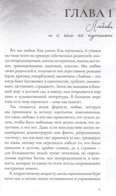 Эта книга – о любви. Автор – психолог, психотерапевт – делится своими представлениями о том, как возникает любовь, почему у разных людей она выглядит по-разному, как влияют на выбор партнеров и историю любви индивидуальные особенности, и почему эта история всегда связана с детскими переживаниями и часто имеет невротическую природу. Все это сопровождается примерами из консультативной практики автора и рекомендациями по выстраиванию гармоничных отношений.