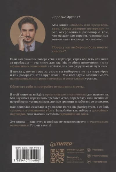 Автор подробно рассматривает причины и последствия созависимости на различных уровнях: сексуальном, романтическом и эмоциональном. Вы узнаете, почему выбор токсичных партнеров становится привычным, и как избежать измен, которые часто происходят из-за недостатка доверия и взаимопонимания. Книга предлагает практические советы о том, как пережить измену и восстановить себя после предательства.