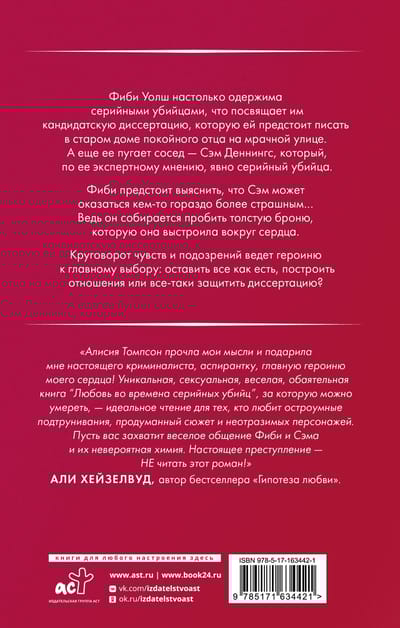 Фиби Уолш настолько одержима серийными убийцами, что посвящает им кандидатскую диссертацию, которую ей предстоит писать в старом доме покойного отца на мрачной улице. А еще ее пугает сосед — Сэм Деннингс, который, по ее экспертному мнению, явно серийный убийца.