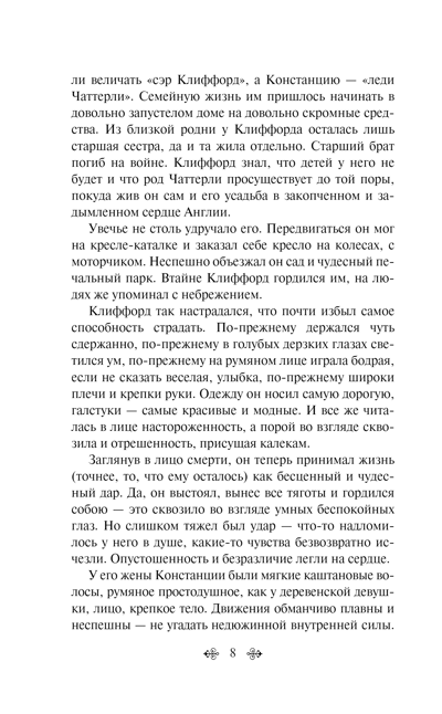 Красивая молодая женщина Констанция Чаттерли несчастлива с мужем, вернувшимся с войны инвалидом, который обречен на мучительное существование, невозможность физической близости. В ней много чувственности и женственности, она живет в ожидании любви, хотя испытывает к мужу платонические чувства. Случайная встреча с егерем мужа Оливером Меллорсом перерастает в бурный роман... Возможно, прочитав это произведение, вы подумаете, что красивее описаний любви вы еще не встречали.