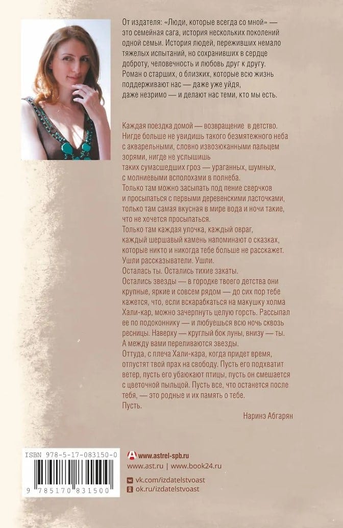 "Люди, которые всегда со мной" — это семейная сага, история нескольких поколений одной семьи. История людей, переживших немало тяжелых испытаний, но сохранивших в сердце доброту, человечность и любовь друг к другу. Роман о старших, о близких, которые всю жизнь поддерживают нас — даже уже уйдя, даже незримо — и делают нас теми, кто мы есть.