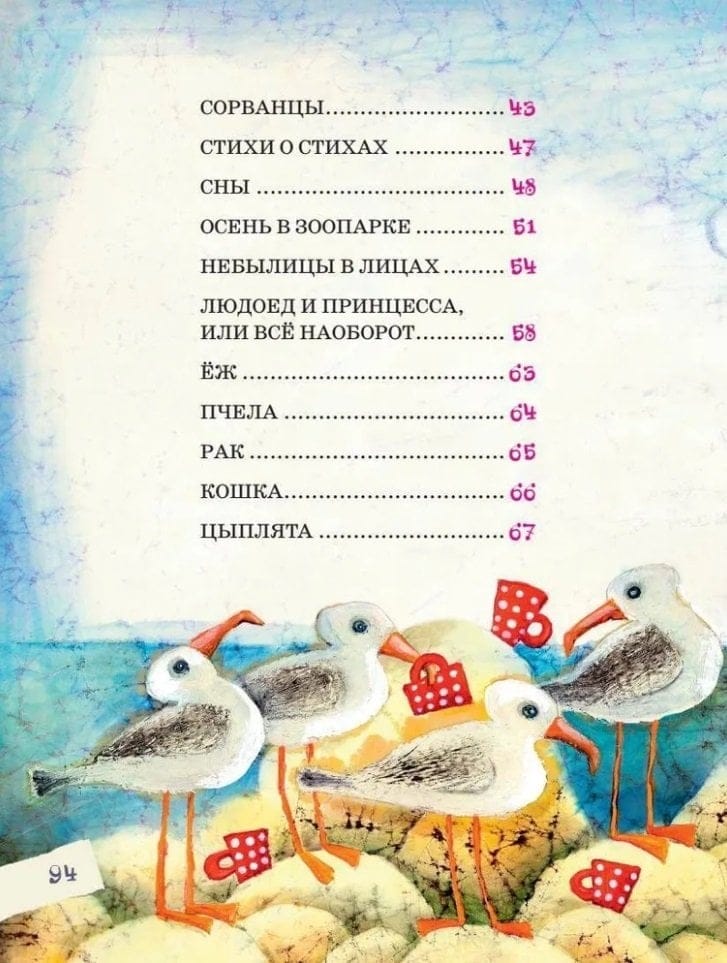 В книгу «Людоед и Принцесса, или Всё наоборот» вошли стихи удивительного поэта Генриха Сапгира. Стихи весёлые, смешные, в них происходят несуразности – светит нарисованное солнце, Людоед сбегает от Принцессы, а в морской глубине живёт чудо-юдо. Читать об этом очень интересно! Осторожно! Книжка развивает воображение. Для дошкольного возраста.