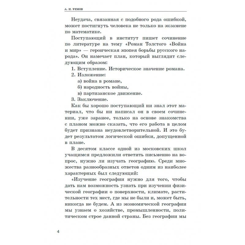 Логические ошибки связаны с искажением связей между мыслями. Иногда подобные промахи не играют существенной роли в общении между людьми, но бывают случаи, когда они могут привести к серьёзным последствиям, включая тяжкие преступления. Чтобы избежать этого, необходимо научиться правильно мыслить во всех случаях. Настоящее издание представляет собой оригинальный текст книги советского философа, специалиста по логике Авенира Уёмова, изданной в 1958 году. Автор последовательно, понятным языком объясняет сущность и вред логических ошибок, и предлагает разумные способы их избежать. В качестве примеров приведены фрагменты из произведений А. Чехова, Шекспира, Н. Гоголя, Р. Брэдбери, М. Твена, К. Гоцци, И. Тургенева, Д. Свифта. Книга поможет повысить культуру общения и научиться грамотно рассуждать о любых предметах и вопросах.