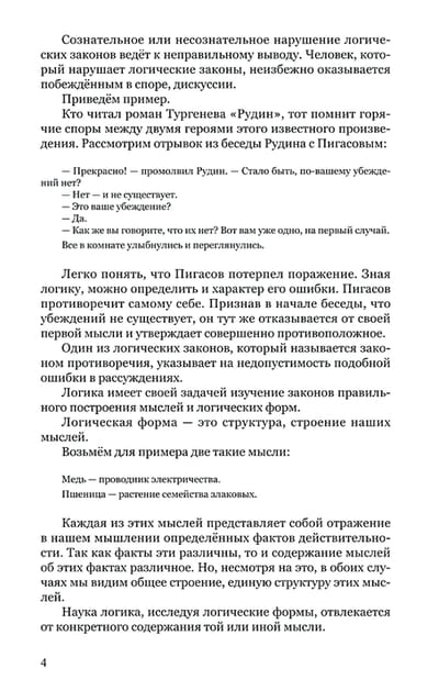 Предлагаем восполнить пробел и изучить простые правила логики, чтобы уметь грамотно формулировать свои мысли и развить критическое мышление. Это поможет эффективно общаться с другими людьми и принесет успех в учебе, труде, карьере и личностном росте. Сегодня это особенно необходимо любому школьнику, а также их родителям — каждому человеку в нашей стране! Однако понимание логических законов произойдет не так быстро, если не решать задачи на логику. Для этого в приложении к учебнику размещены соответствующие логические задачи, а каждая глава издания снабжена вопросами для закрепления пройденного материала. В нашем магазине вы можете также приобрести множество других учебников по общеобразовательным предметам, книги серии Занимательная наука и книги по таким тематикам, как: история, социальное управление, здоровый образ жизни, книги для детей, мотивация и саморазвитие, психология и другие книги.