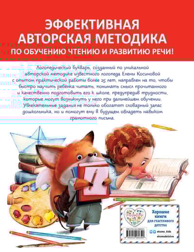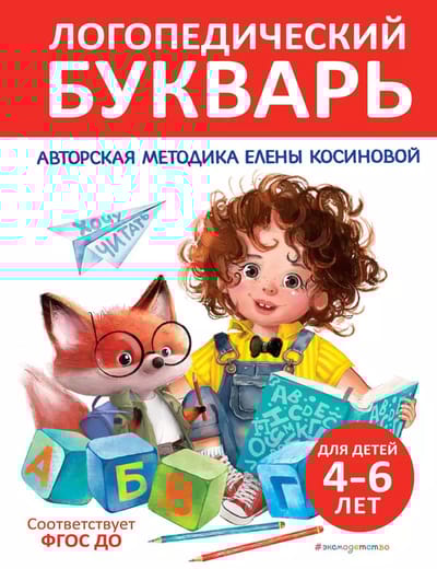 Логопедический букварь, созданный известным логопедом Еленой Косиновой, направлен на то, чтобы быстро научить ребёнка читать и подготовить его к школе. Буквы в нём расположены в особом «логопедическом» порядке: сначала ребёнок знакомится с теми из них, которые обозначают простые для произнесения звуки, а потом изучает буквы, обозначающие звуки, в произношении которых наиболее часто встречаются нарушения.