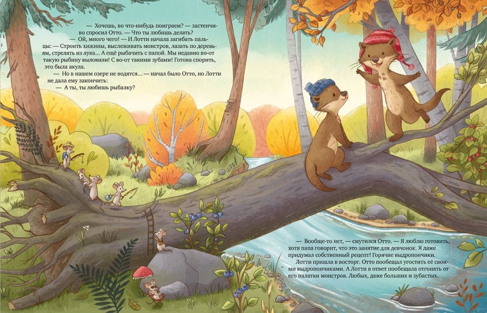 Когда Лотти и Отто встречаются в летнем лагере, они с удивлением обнаруживают, что похожи как две капли воды! Но Лотти - девочка, а Отто - мальчик. Лотти любит рыбачить и строить хижины, а Отто - печь торты и шить. Вожатым в лагере не очень по душе их увлечения… Что же придумают Лотти и Отто? Серия книг про озорных выдрят Лотти и Отто научит вашего ребёнка отстаивать своё мнение, слушать сердце, делать выбор и принимать решения.