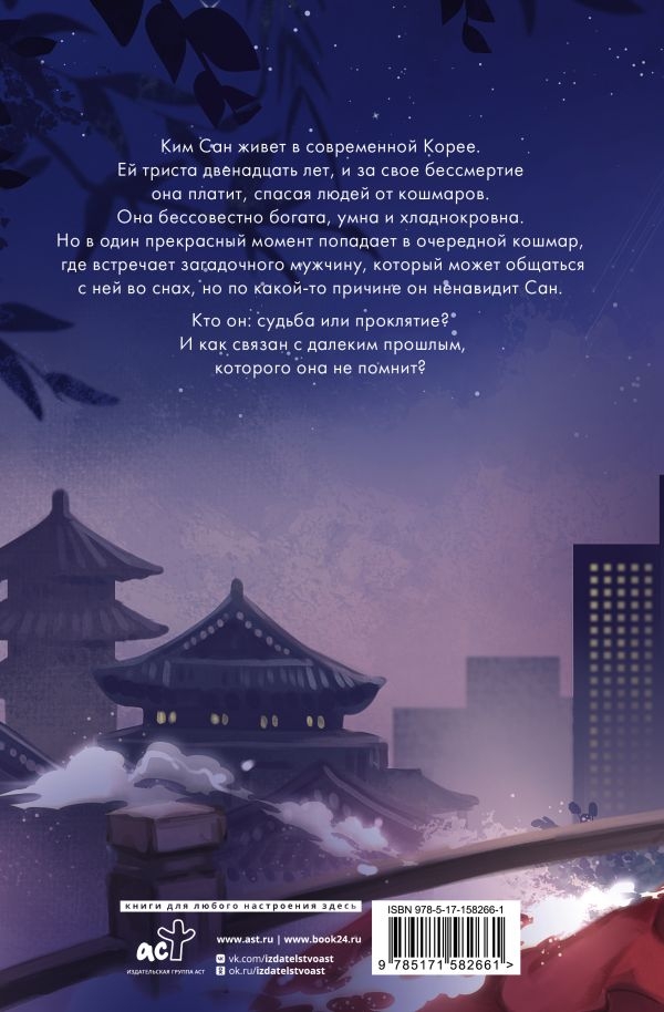 Ким Сан живет в современной Корее. Ей триста двенадцать лет, и за свое бессмертие она платит, спасая людей от кошмаров. Она бессовестно богата, умна и хладнокровна.Но в один прекрасный момент попадает в очередной кошмар, где встречает загадочного мужчину, который может общаться с ней во снах, но по какой-то причине он ненавидит Сан.Кто он: судьба или проклятие? И как связан с далеким прошлым, которого она не помнит?