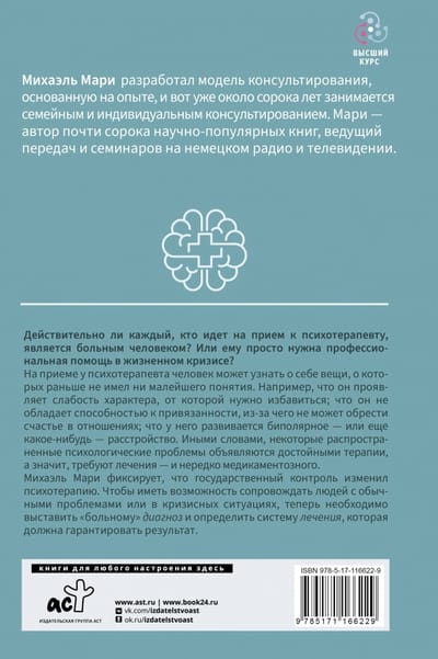 На приеме у психотерапевта человек может узнать о себе вещи, о которых раньше не имел ни малейшего понятия. Например, что он проявляет слабость характера, от которой нужно избавиться; что он не обладает способностью к привязанности, из-за чего не может обрести счастье в отношениях; что у него развивается биполярное — или еще какое-нибудь — расстройство. Иными словами, некоторые распространенные психологические проблемы объявляются достойными терапии, а значит, требуют лечения — и нередко медикаментозного. Михаэль Мари фиксирует, что государственный контроль изменил психотерапию. Чтобы иметь возможность сопровождать людей с обычными проблемами или в кризисных ситуациях, теперь необходимо выставить «больному» диагноз и определить систему лечения, которая должна гарантировать результат.