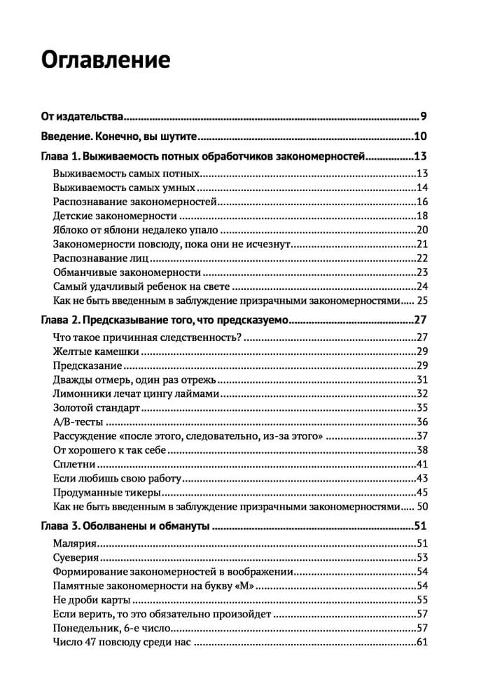 В современном мире на нас обрушивается лавина данных и стремительно растет число закономерностей, которые мы в них обнаруживаем. От природы человеку свойственно верить, что каждая закономерность наполнена смыслом. Но это не так! Шансы, что найденная закономерность окажется полезной, быстро приближаются к нулю. Эта увлекательная книга благодаря бесчисленным примерам поможет читателю не поддаваться дурману данных, не прибегать к бесполезным инвестиционным стратегиям и не бояться делать прививки.