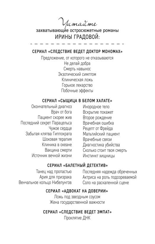 Регина Гнедич имела репутацию адвоката, который не проигрывает ни одного дела, за которые берется. Обратиться к ней за помощью мог далеко не всякий — Гнедич очень привередлива в выборе клиентов. Поэтому, когда на подземной парковке Регину подкараулила замерзшая девушка и попросила взяться за ее защиту, шансы у нее были невелики. К тому же дело, с которым пришла Устинья, не входило в привычный круг вопросов, которыми занималась Гнедич: девушка жаловалась на попытку изнасилования со стороны бывшего начальника Сугривина и последовавшее за этим увольнение. Внимательно выслушав Устинью, Регина отказалась представлять ее интересы в суде. Однако, когда в скором времени по всем телевизионным каналам сообщили о том, что Сугривин убит, а по подозрению в убийстве задержана Устинья, Регина первой бросилась на защиту девушки…