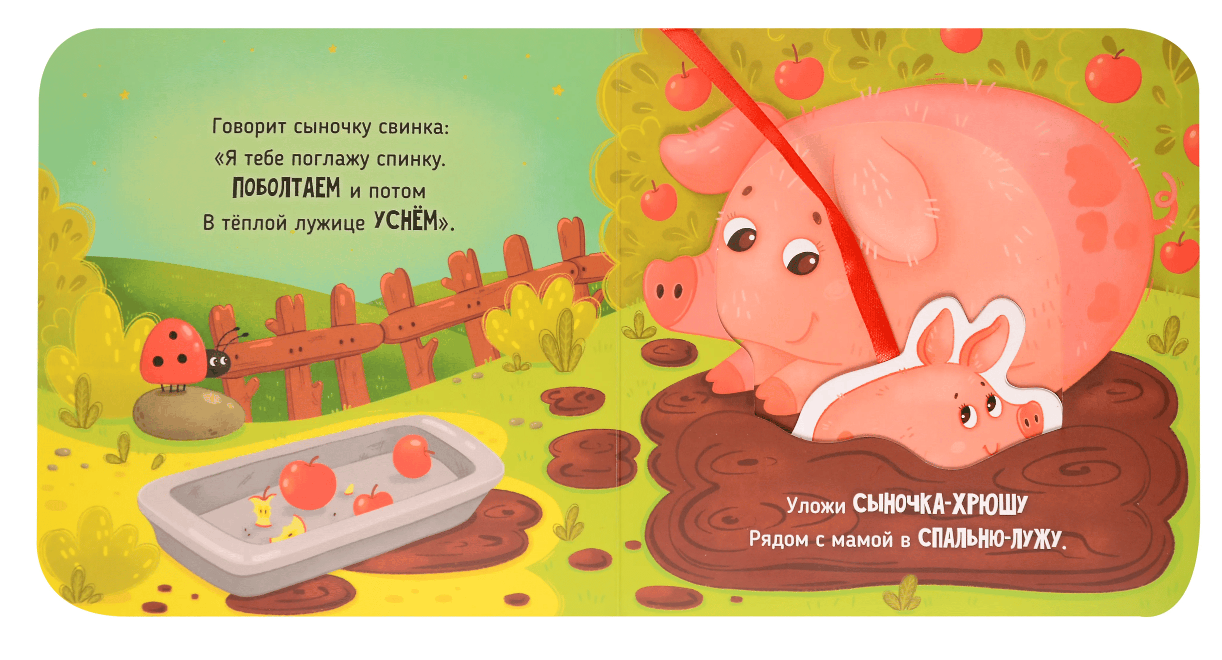Яркие крупные иллюстрации и забавные стихи болтушки на каждой странице создают атмосферу спокойствия и тепла, помогая вашему малышу расслабиться перед сном и запустить развитие речи. Интерактивная книга-игрушка выполнена из плотного картона, что делает её идеальной для маленьких ручек и устойчивой к активным играм двух- и трехлеток. Удобный размер позволяет ребенку легко держать её самостоятельно, а тактильные элементы — пять героев на ленточках и картонные кармашки — добавляют интерактивности и увлекательности.
