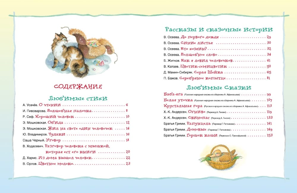 Хрестоматия для детей младшего школьного возраста. В книге собраны лучшие произведения детской классики, предназначенные детям от 6 до 9 лет. Это русские народные сказки «Баба-яга», «Белая уточка», «Хрустальная гора», сказки Х.-К. Андерсона и братьев Гримм в классических переводах А. Ганзен, Г. Петникова и пересказе Софьи Прокофьевой, стихи А. Усачёва, И. Пивоваровой, Э. Мошковской, А. Барто, С. Михалкова, Я. Акима, рассказы В. Осеевой, Б. Житкова, В. Катаева, Д. Мамина-Сибиряка, П. Бажова. Произведения подобраны в соответствии с программами внеклассного чтения в начальной школе. Для удобства юных читателей в книге крупный шрифт, плотная бумага, на каждой странице - цветные иллюстрации В. Коркина, А. Лебедева, И. Петелиной и других художников.