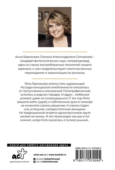 Рита Германова хотела стать художницей. Но ради юношеской влюбленности отказалась от поступления в московский Полиграфический, осталась в родном городке. И вдруг… любимый уезжает, даже не попрощавшись! С тех пор Рита решила взять судьбу в собственные руки и никогда не изменяла своему решению. К сорока годам она успешная, самодостаточная женщина. Но традиционная встреча одноклассников круто меняет ее жизнь. И это происходит как раз в тот момент, когда Рита оказалась в тупике уныния…