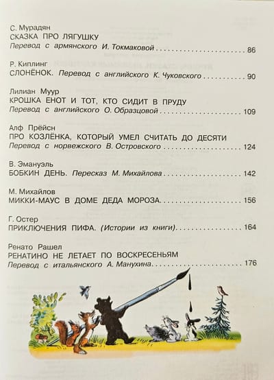 В книге впервые публикуются иллюстрации В. Сутеева к сказке «Микки-Маус в доме Деда Мороза» и к сказочной истории Эмануэля «Бобкин день».