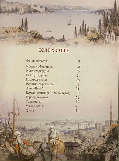 В антологию включены первые русские переводы двадцати шести турецких сказок, изданные еще в XIX веке, а также пять произведений из собрания венгерского ученого Игнаца Куноша. Кроме того, читатель найдет здесь еще две сказки: «Эмине», напечатанную в одной из газет XIX века и не переиздававшуюся более столетия, и «Ашик-Кериб», написанную Михаилом Лермонтовым в 1837 году и обнаруженную после гибели поэта среди его бумаг.