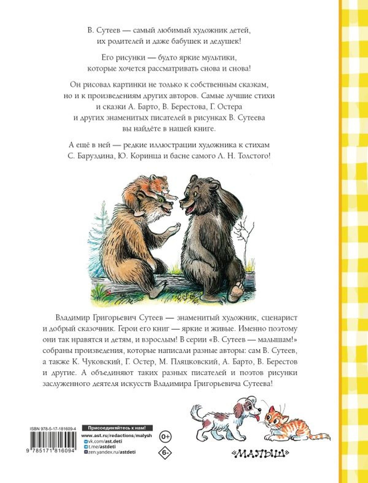В сборник вошли самые лучшие стихи и сказки классиков детской литературы — А. Барто, В. Берестова, Г. Остера и других в рисунках В. Сутеева. Прочитав книгу, дети узнают, почему аист опоздал на ёлку, где у сосиски середина, как стать самым лучшим братом на свете и много-много других интересных историй. В конце сборника их ждут задания от самого художника.