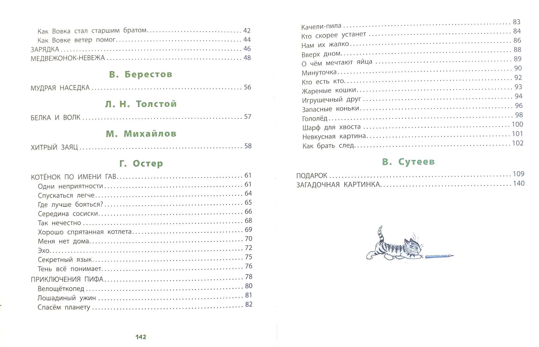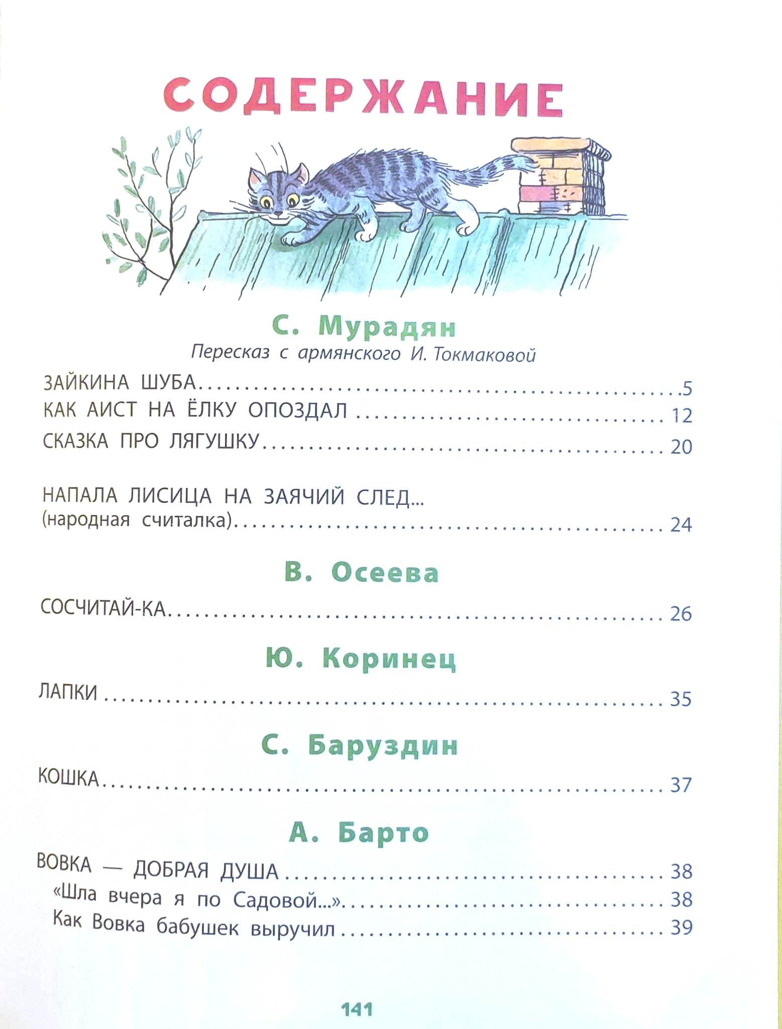 В книгу вошли редкие рисунки В. Сутеева к народной считалке «Напала лисица на заячий след...», басне Л. Н. Толстого «Белка и волк», стихам А. Барто «Зарядка» и В. Берестова «Мудрая наседка», В. Осеевой «Сосчитай-ка».