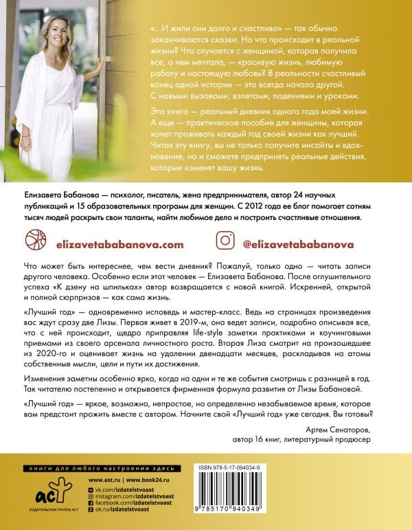 »...И жили они долго и счастливо» — так обычно заканчиваются сказки. Но что происходит в реальной жизни? Что случается с женщиной, которая получила все, о чем мечтала, — красивую жизнь, любимую работу и настоящую любовь? В реальности счастливый конец одной истории — это всегда начало другой. С новыми вызовами, взлетами, падениями и уроками. Эта книга — реальный дневник одного года моей жизни. А еще — практическое пособие для женщины, которая хочет проживать каждый год своей жизни как лучший. Читая эту книгу, вы не только получите инсайты и вдохновение, но и сможете предпринять реальные действия, которые изменят вашу жизнь.