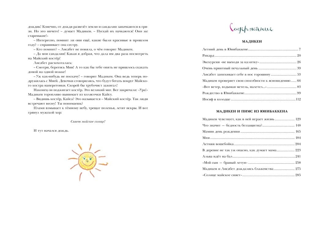 Мадикен живёт в большом красном доме возле речки. Лучшего места, чем это, на всём свете не сыскать, считает она. Ещё там живут мама и папа, помощница Альва и малышка Пимс, которая везде и всюду следует за своей старшей сестрой. Куда одна, туда и другая. Вместе им всегда весело. Да и как может быть иначе! Ведь здесь столько всего интересного: можно купаться, качаться на качелях, играть в крокет, поливать огород и поить молоком ёжика!