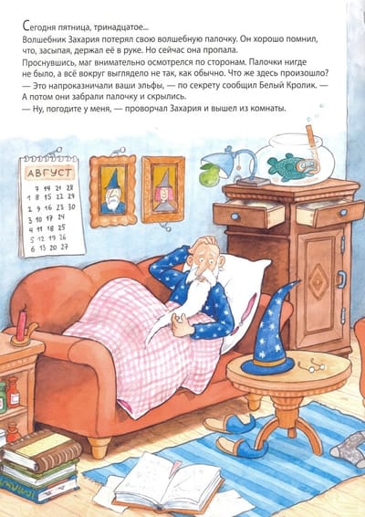 Пятница, тринадцатое. Маг Захария потерял свою волшебную палочку. Но что ещё хуже - всё вокруг заколдовано: рыба сидит в птичьей клетке, змея бежит по тропинке на четырёх лапах, а на грядке выросли конфеты… В этой книге с картинками много чудес и нелепостей. На её страницах внимательный читатель сможет найти более 250 ошибок!Хочешь узнать о других приключениях мага Захарии - ищи книгу «Маг Захария спасает Страну сказок».