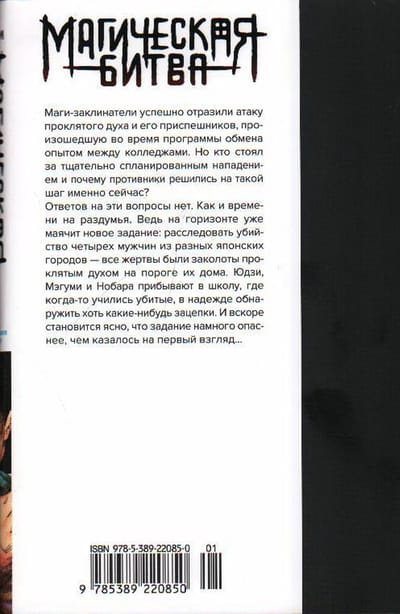 Маги-заклинатели успешно отразили атаку проклятого духа и его приспешников, произошедшую во время программы обмена опытом между колледжами. Но кто стоял за тщательно спланированным нападением и почему противники решились на такой шаг именно сейчас? Ответов на эти вопросы нет. Как и времени на раздумья. Ведь на горизонте уже маячит новое задание: расследовать убийство четырех мужчин из разных японских городов – все жертвы были заколоты проклятым духом на пороге их дома. Юдзи, Мэгуми и Нобара прибывают в школу, где когда-то учились убитые, в надежде обнаружить хоть какие-нибудь зацепки. И вскоре становится ясно, что задание намного опаснее, чем казалось на первый взгляд…