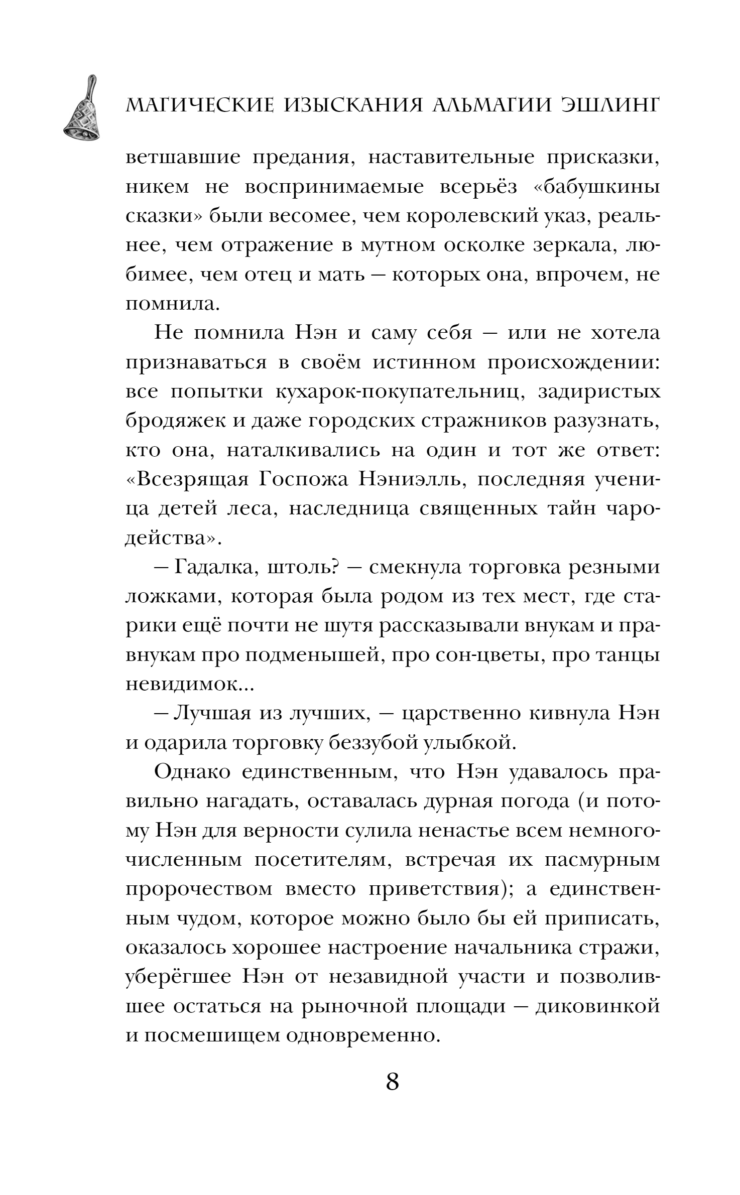 После смерти отца, впустую посвятившего колдовской науке всю жизнь, Альмагия Эшлинг обретает странный колокольчик и нежданный талант. Теперь её путь лежит в столицу, где заседает клуб магов. Она надеется найти единомышленников в мире, где волшебство считается сугубо мужским делом, и разгадать загадки собственной семьи. Однако не все секреты хотят быть раскрытыми, а за приключениями юной Альмы кто-то пристально наблюдает...