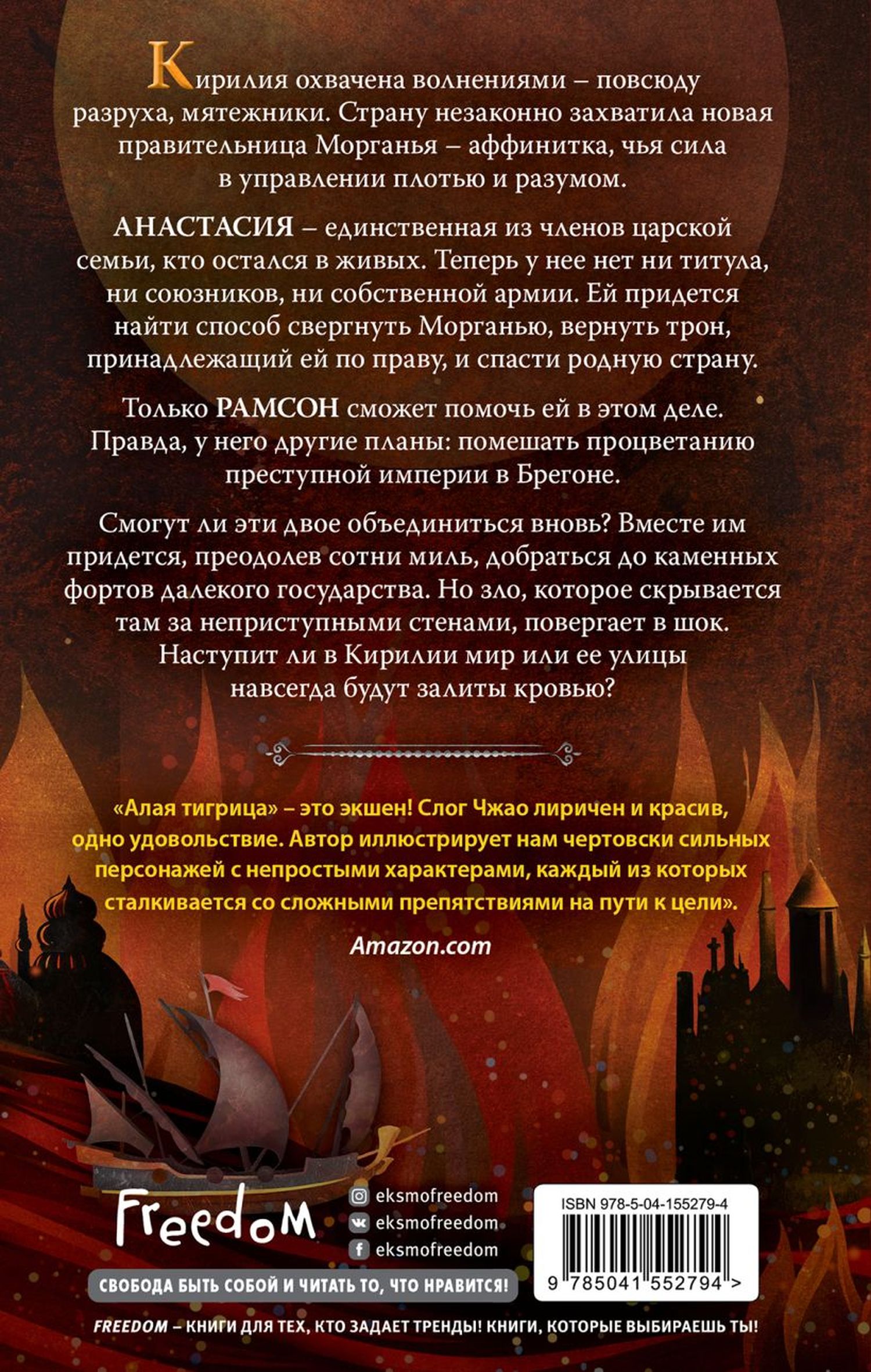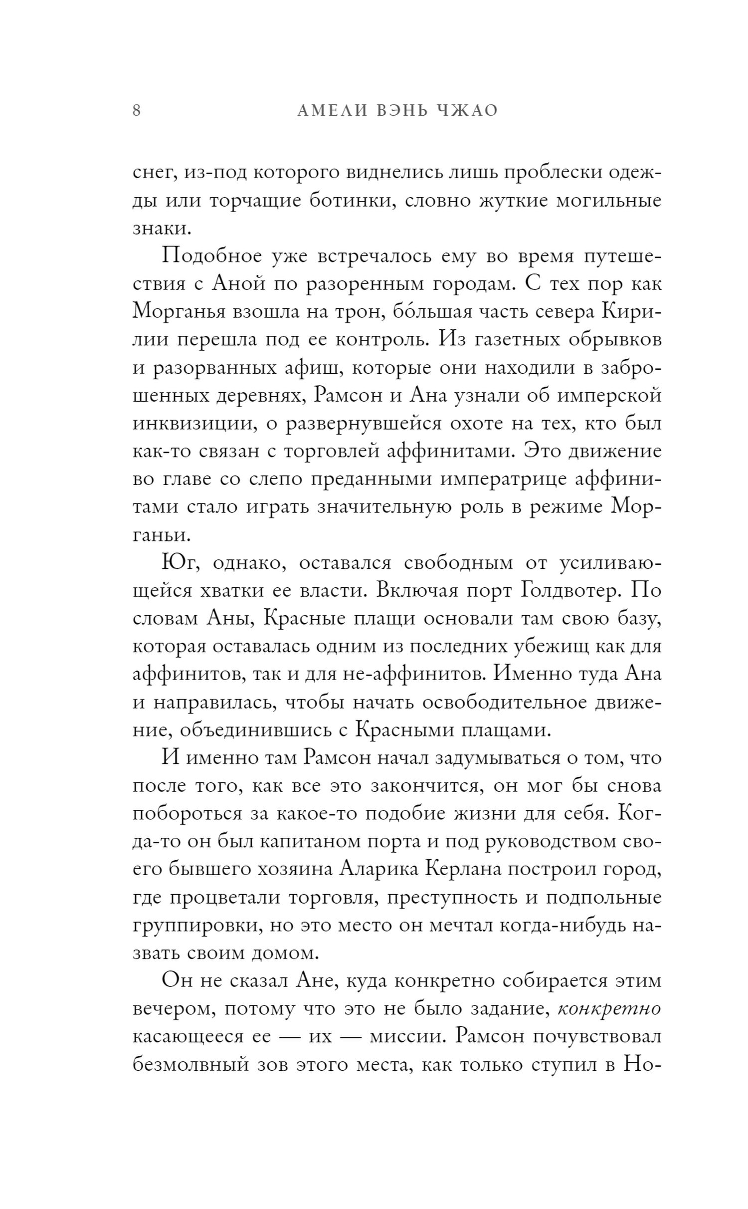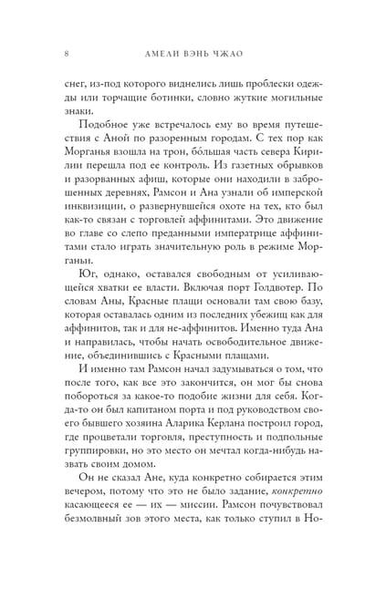 Кирилия охвачена волнениями — повсюду разруха, мятежники. Страну незаконно захватила новая правительница Морганья: аффинитка, чья сила в управлении плотью и разумом. АНАСТАСИЯ — единственная, кто остался в живых из членов царской семьи. Теперь у нее нет ни титула, ни союзников, ни собственной армии. Ей придется найти способ свергнуть Морганью, вернуть трон, принадлежащий ей по праву, и спасти родную страну. Только РАМСОН сможет помочь ей в этом деле. Правда у него другие планы: помешать процветанию преступной империи в Брегоне. Смогут ли эти двое объединиться вновь? Вместе им придется, преодолев сотни миль, добраться до каменных фортов далекого государства. Но зло, которое скрывается там, за неприступными стенами, повергает в шок. Наступит ли в Кирилии мир или ее улицы навсегда будут залиты кровью?