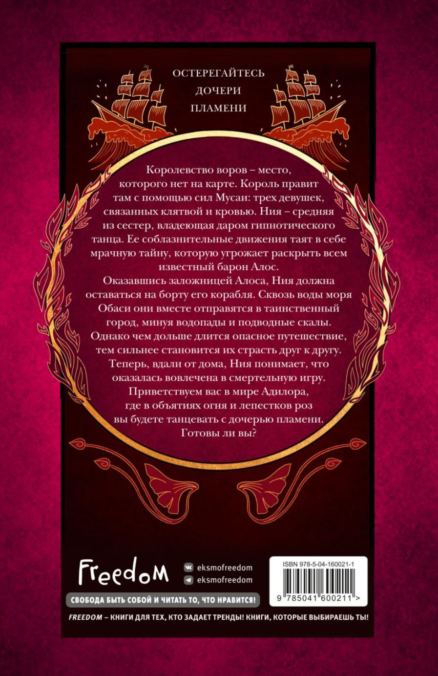 Оказавшись заложницей Алоса, Ния должна оставаться на борту его корабля. Сквозь воды моря Обаси они вместе отправятся в таинственный город, минуя водопады и подводные скалы. Однако, чем дольше длится опасное путешествие, тем сильнее становится их страсть друг к другу. Теперь, вдали от дома, Ния понимает, что оказалась вовлечена в смертельную игру. Приветствуем вас в мире Адилора, где в объятиях огня и лепестков роз вы будете танцевать с дочерью пламени. Готовы ли вы?