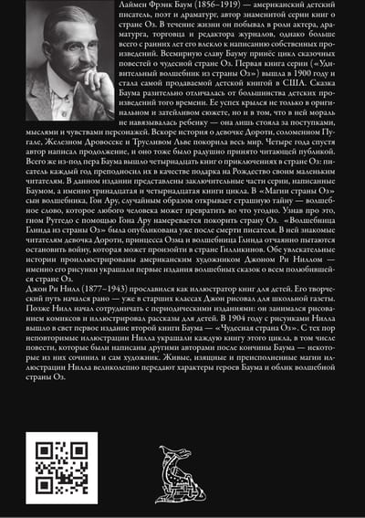 В данном издании представлены заключительные части серии, написанные Баумом, а именно тринадцатая и четырнадцатая книги цикла. В «Магии страны Оз» сын волшебника, Гон Ару, случайным образом открывает страшную тайну — волшебное слово, которое любого человека может превратить во что угодно. Узнав про это, гном Руггедо с помощью Гона Ару намеревается покорить страну Оз. «Волшебница Глинда из страны Оз» была опубликована уже после смерти писателя. В ней знакомые читателям девочка Дороти, принцесса Озма и волшебница Глинда отчаянно пытаются остановить войну, которая может произойти в стране Гилликинов. Обе увлекательные истории проиллюстрированы американским художником Джоном Ри Ниллом — именно его рисунки украшали первые издания волшебных сказок о всем полюбившейся стране Оз.