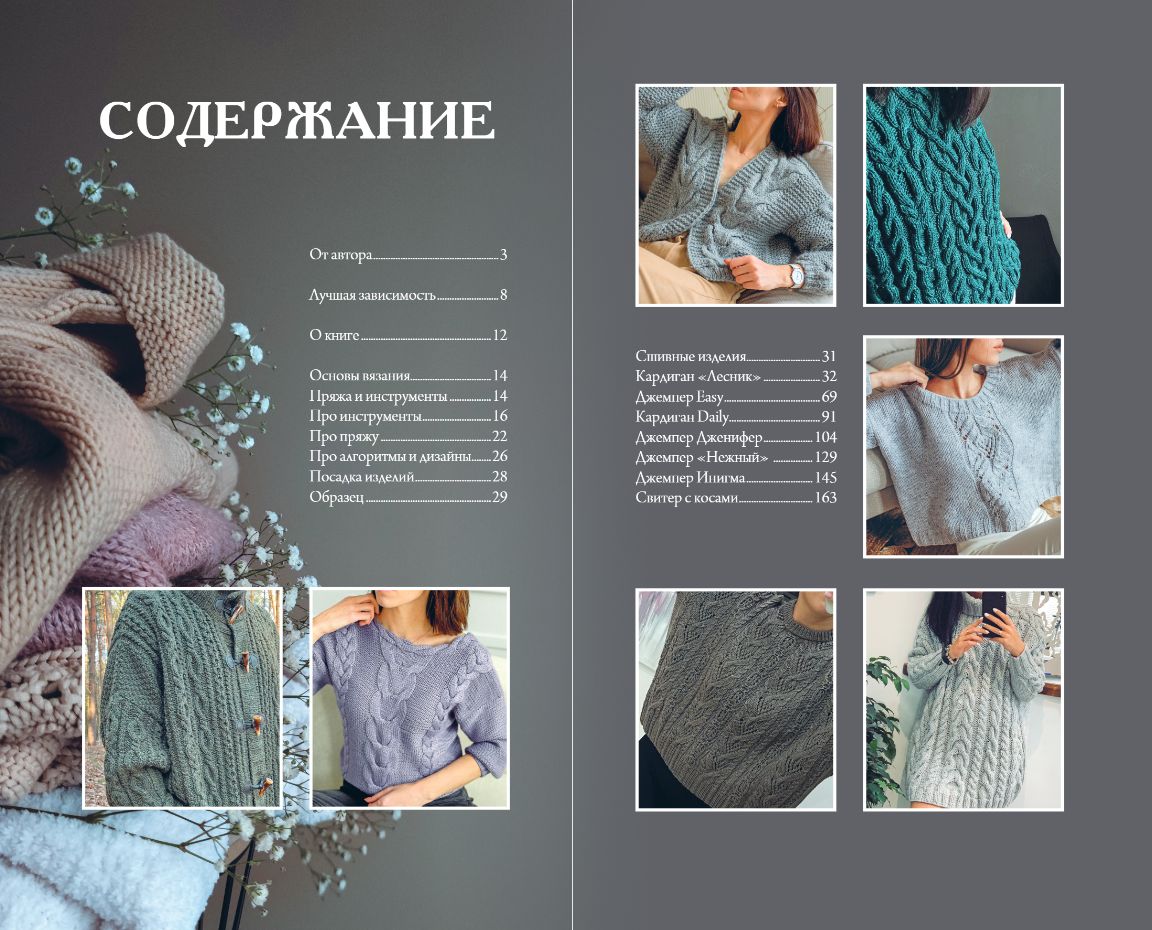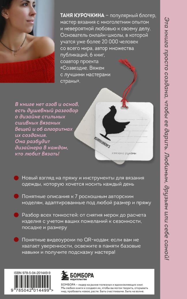 В ней нет азов и основ, длинных пошаговых мастер-классов. Но есть душевный разговор о дизайне стильных сшивных вязаных вещей и алгоритмах их создания. Она разбудит дизайнера в каждом, кто любит вязать!