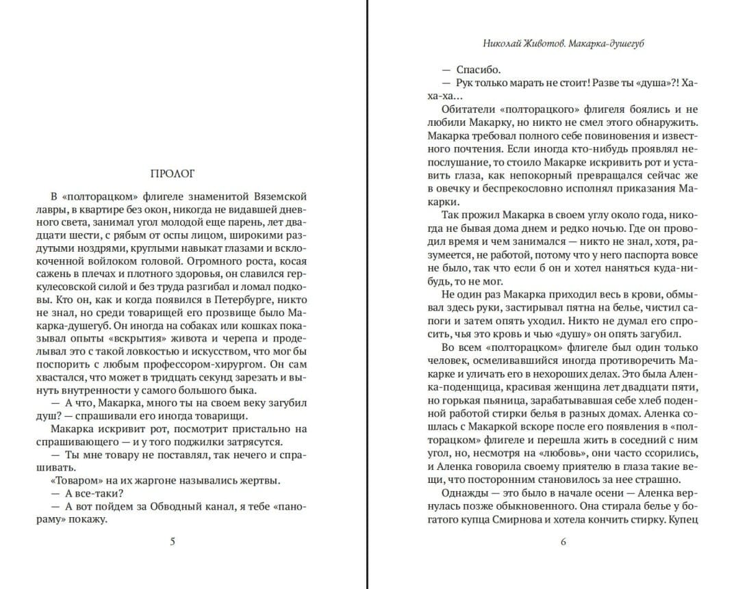 «Макарка-душегуб» — наиболее известное произведение Животова, которое, как и большинство его романов, основано на криминальных хрониках Петербурга и разворачивает перед читателем мрачноватую, но весьма колоритную изнанку столичной жизни последних лет империи.