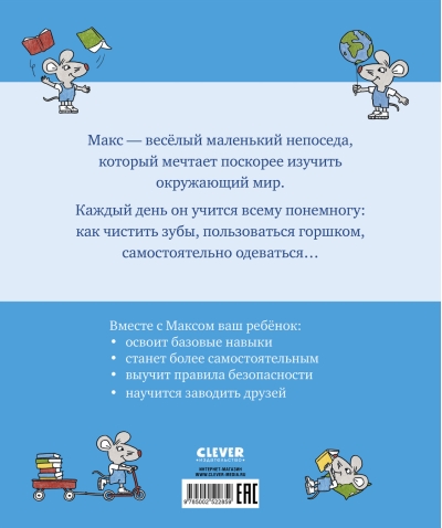 Макс — веселый маленький озорник, который мечтает поскорее изучить окружающий мир. Каждый день он учится всему понемногу: как чистить зубы, самостоятельно одеваться… В этой книжке Макс научится пользоваться горшком и узнает важные правила гигиены.